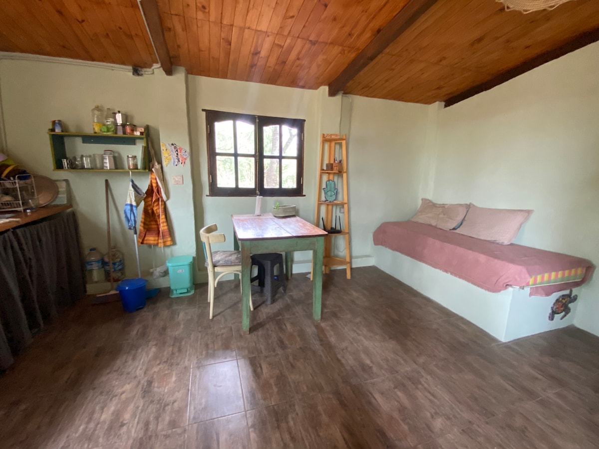 Естественно построенный, теплый и уютный дом. Расположен в 1 км от площади Сан-Маркос-Сьеррас, в зеленой, тихой обстановке с прямым выходом к реке. Подготовлено для 4 гостей, с двухместной спальней, кондиционером, гостиной с диваном-кроватью и кушеткой, оборудованной кухней, галереей с садом и грилем. Мы выращиваем съедобные и лекарственные грибы вручную на территории.
