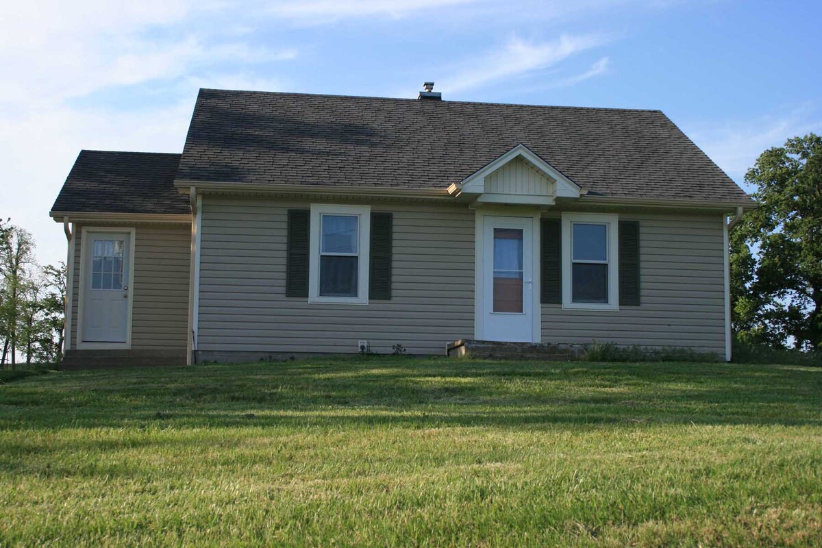 400 sq. ft "tiny house" on edge of woods on private property with neighbors in view. Rural setting. Outside: green space and trees! Inside: cozy, cute, modern, and pleasing color palette. Well-lit spacious parking in driveway next to sidewalk leading to your patio. Here for a long weekend, wedding, or work? Perfect! 25-30 minutes to Atchison, Weston, & the K.C. Airport. Less than 5 minutes to St. Joe, gas, and food. Read on for more information regarding setting and amenities.