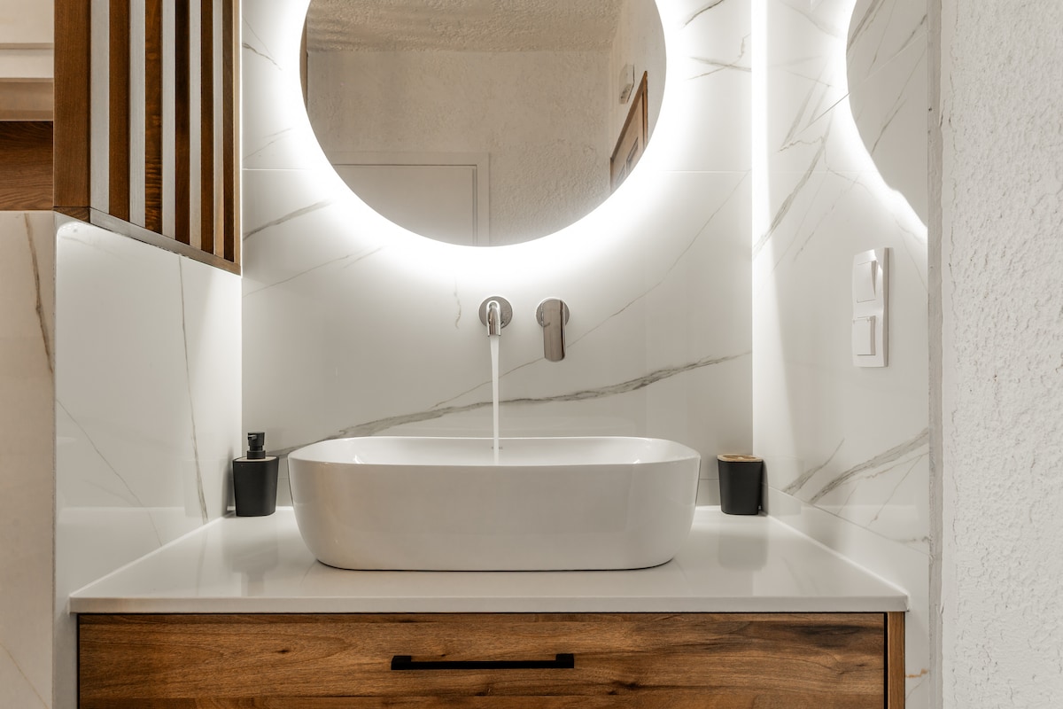 Это недавно построенный гостевой люкс 70/м на первом этаже исторического каменного дома . Расположена чуть ниже главной площади в окружении сосен и елей. Природная красота этой деревни великолепна, с горными вершинами и зеленью до самого горизонта. В пешей доступности от печально известного сказочного моста, главной площади, ресторанов и супермаркета.