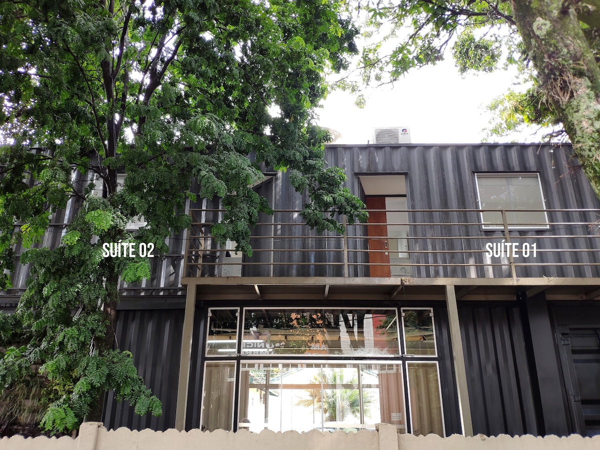 Контейнерный люкс, расположенный в центре Голамбры, очень близко к любовной террасе и рядом с несколькими ресторанами, барами и туристическими местами в городе. К услугам гостей Smart TV с Netflix, Prime Video, Wi-Fi, кондиционером, мини-баром и микроволновой печью. Красивый балкон с зеленой крышей. Гибкие кровати: двуспальная кровать размера King size или две односпальные кровати. Сообщите о желаемом условии при бронировании. Доступ по лестнице — пандуса или лифта нет. Не-частная парковка через дорогу, в зависимости от наличия удобств.