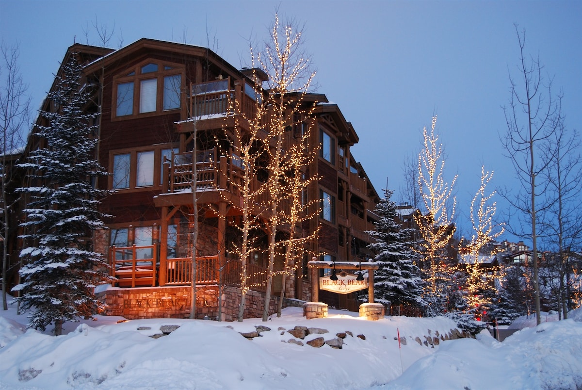 Остановитесь в Black Bear Lodge в деревне Сильвер-Лейк в Дир-Вэлли⛷️. Прогуляйтесь через улицу до подъемника Sterling Express, магазинов и ресторанов, а затем расслабьтесь в собственной гидромассажной ванне 🛁 с видом на лыжную трассу. 8 спальных мест: люкс с кроватью размера King size, большая комната с двухъярусными кроватями (5 спальных мест) и раскладной диван. К услугам гостей бассейн с подогревом🏊, джакузи, тренажерный зал💪, лыжный камердинер 🎿и гараж с подогревом🚗. Бесплатный трансфер до главной улицы. Идеальное место для отдыха в Дир-Вэлли!