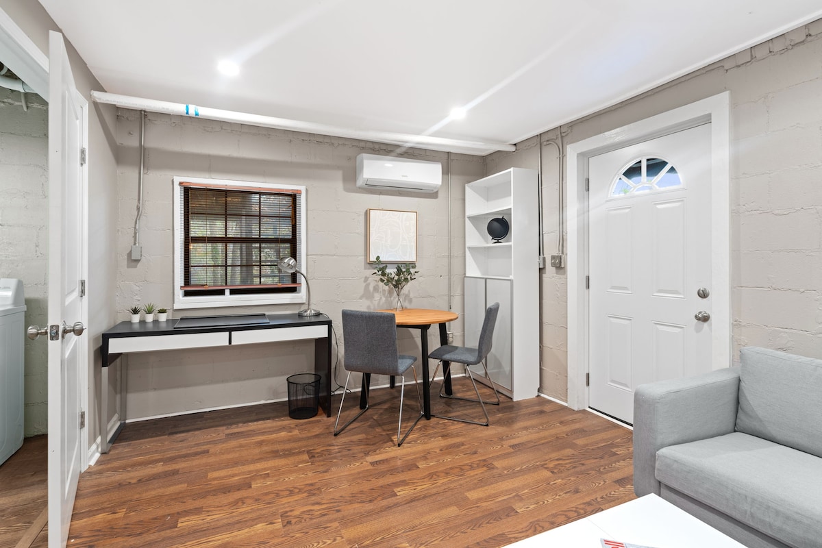 Наш прохладный и комфортабельный 1-комнатный каретный дом с открытым кирпичом имеет истинное ощущение города! Он удобно подходит для двоих, расположен на огромном лесистом участке, всего в 8 минутах ходьбы от центра города Декатур. Наслаждайтесь новой кухней, ванной комнатой и спальней с доступом к прачечной. Расположен на маршрутах общественного транспорта, включая Emory Shuttle!