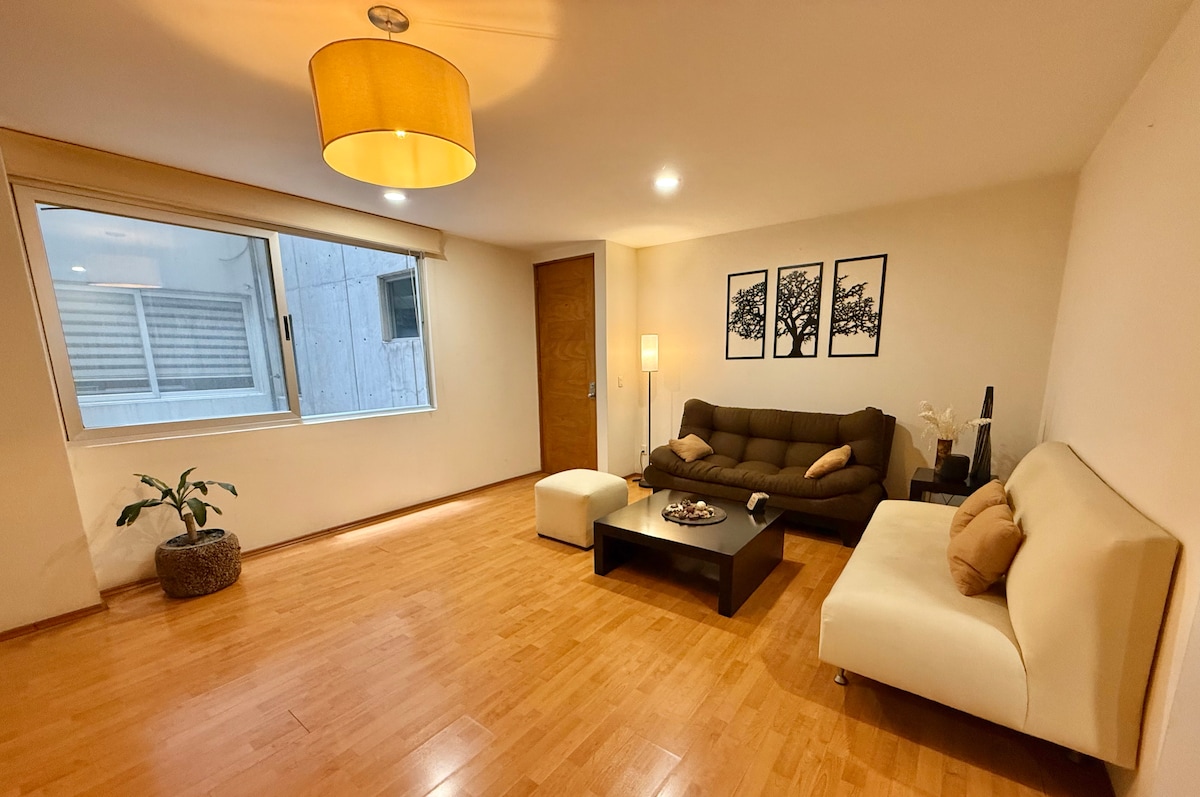 Disfruta de una experiencia con estilo en este alojamiento céntrico. Moderno departamento con cocina, sala a 1 cuadra del WTC Descubre un espacio elegante, moderno y funcional en el corazón de la colonia Nápoles. Este apartamento es perfecto para estancias cortas o largas gracias a su cómoda sala, su cocina equipada con barra y electrodomésticos de acero inoxidable, y su recámara amplia con cama tipo hotel de lujo. Ideal para quienes buscan confort y privacidad con un toque ejecutivo.