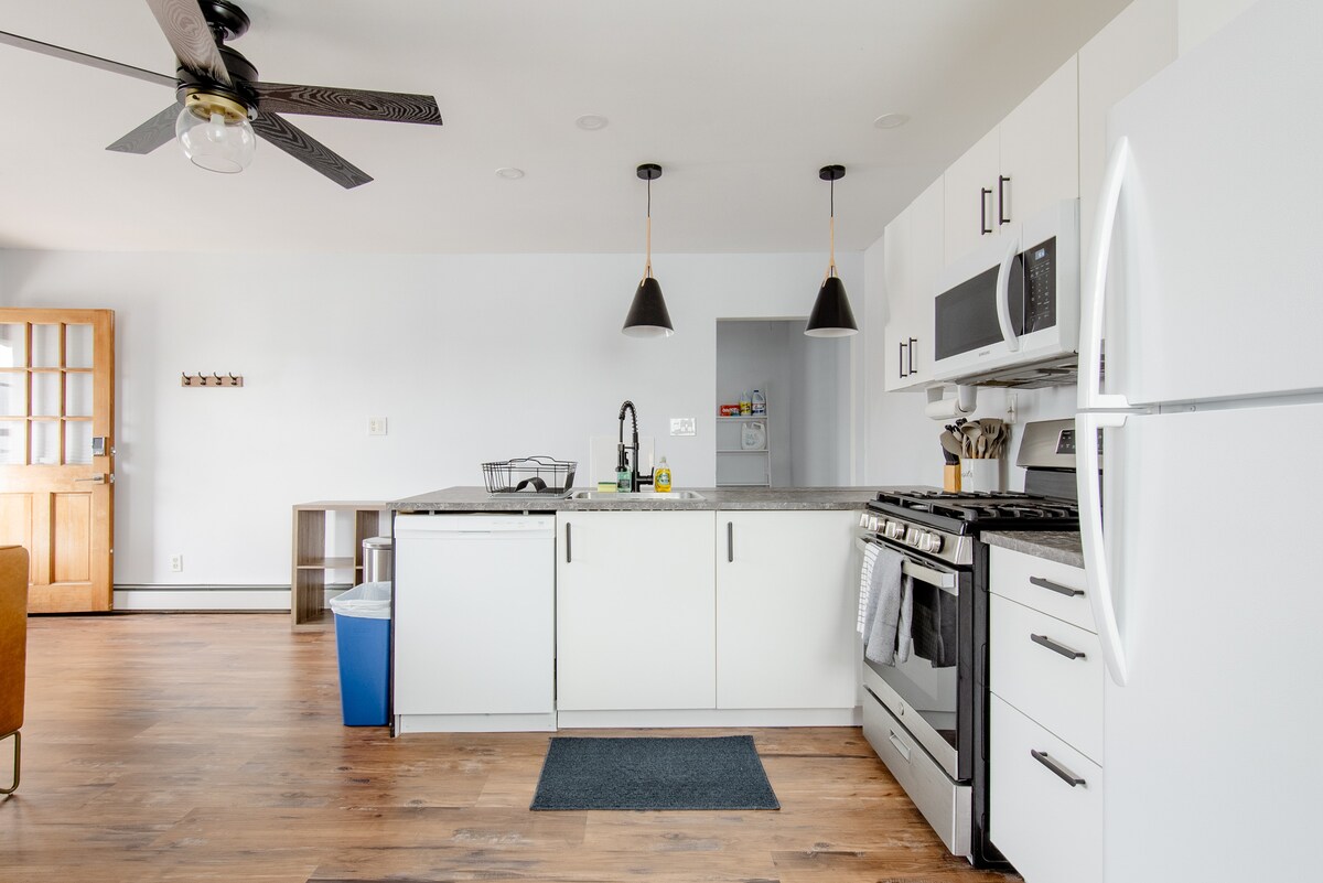 Уютная квартира с 1 спальней, камином, полностью оборудованной кухней и парковкой