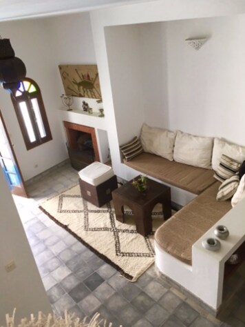 Этот очаровательный маленький дом расположен в центре старой Медины, он имеет отличное чувство, как только вы войдете через дверь. Чувство спокойствия встречает вас по прибытии. Во дворе есть идеальное место для ужина на свежем воздухе и место полной безмятежности с уютной гостиной и кухней/столовой. Хотя дом расположен в центре Медины, он очень тихий. Все магазины и базары расположены в нескольких минутах ходьбы от входной двери, а пляж находится всего в 10 минутах ходьбы.