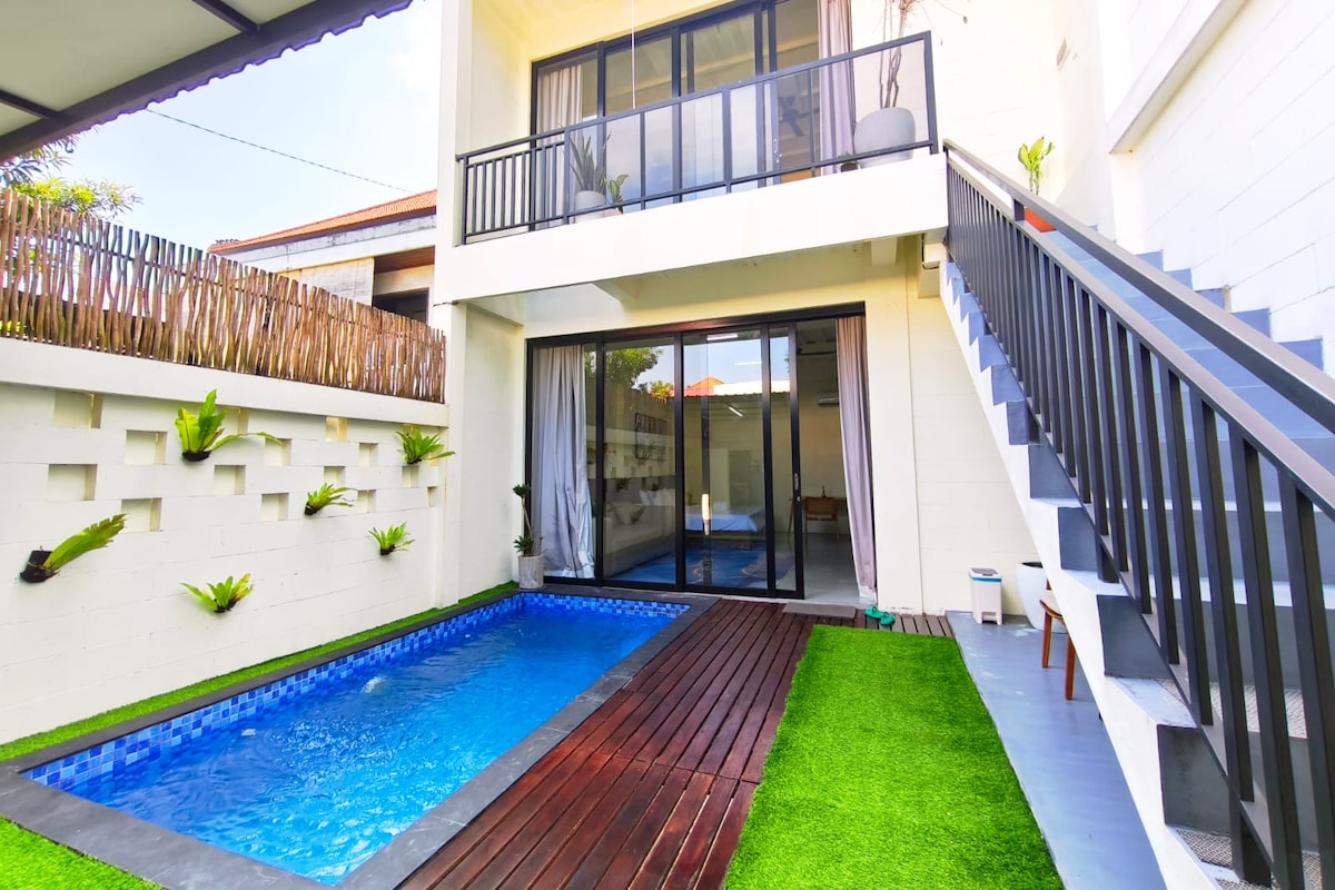 Новая дизайнерская 1BR вилла в Семиньяке • Стильная спальня с кондиционером и выходом прямо к бассейну • 1.5 ванных, включая ванну у стены из натурального камня • Частный бирюзовый бассейн & тропический сад • Современная кухня open-plan + обеденная зона • Отдельный кабинет • Светлая гостиная с панорамными окнами • Быстрый Wi-Fi 300 Мбит/с • Ежедневная уборка, чистые полотенца & постель • Детская кроватка и стульчик по запросу • Консьерж — скутеры, трансферы, спа & туры
