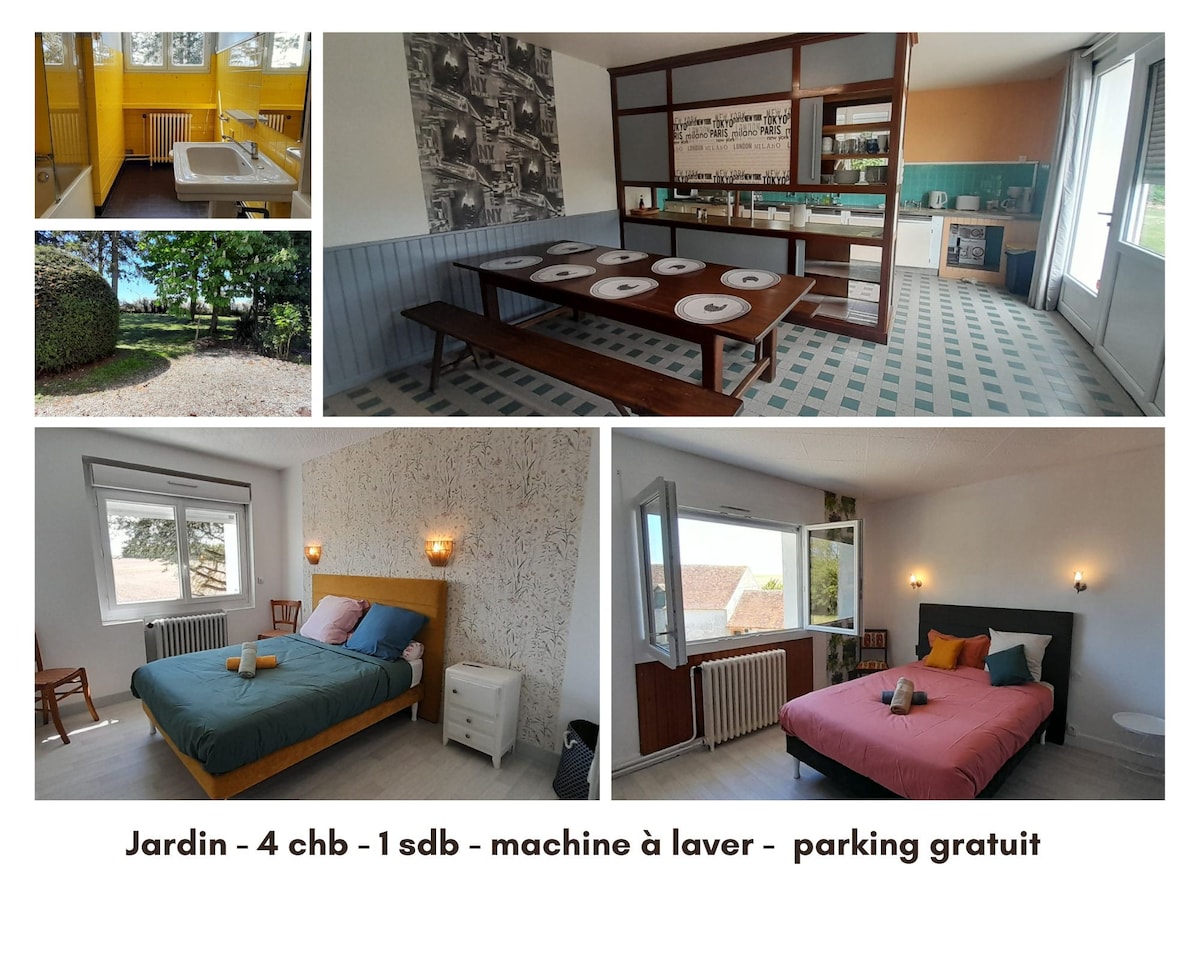 Как в доме! 🏠 Наслаждайтесь довольно полностью оборудованным домом Berrichonne площадью 110 кв. м, состоящим из спальни с двуспальной кроватью и телевизором, второй спальни с дополнительной кроватью, большой гостиной/столовой, просторной кухни, душевой комнаты, веранды и открытой террасы! Дом расположен в 10 минутах ходьбы от центра города Шатору, в 15 минутах ходьбы от Бальсанео и парка Бальсан. Идеально для пар с детьми! Пожалуйста, свяжитесь со мной для получения дополнительной информации. 🙂