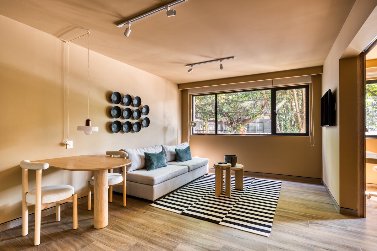 Насладитесь спокойствием, которое доставляет эта квартира сзади в живописном историческом здании. Познакомьтесь с замечательными местными произведениями искусства и декором. Современный интерьер очаровательный и светлый, с видом на два балкона. Лифта нет. Жилье находится в историческом здании, однако квартира полностью обновлена, включая полный ремонт кухни и ванной комнаты, сохраняя очарование и стиль здания. Этот задний блок на последнем этаже тихий и спокойный. Небесный свет и 2 балкона обеспечивают естественное освещение. Из-за возраста жилья нет действующего лифта. Кровать размера King size, стиральная машина; посудомоечная машина; сейф; компьютер Mac; док-станция для динамиков Bose для iPhone; кофеварка; микроволновая печь; электрический чайник. И новый, более быстрый интернет. Я живу в этом районе. Я буду на связи, чтобы встретить гостей и поприветствовать их по прибытии, и на протяжении всего пребывания отвечу на любые вопросы или рекомендации. Богема, искусство и эклектика являются распространенными описаниями Рома Норте, но он также зеленый, жилой и почти европейский по вкусу. Бульвары, парки, площади и кафе, которые пронизывают этот район, идеально подходят для пеших прогулок или езды на велосипеде. Очень практично передвигаться по этому району города, можно ездить на велосипеде, ходить пешком, можно сесть на метро или на автобус метро.