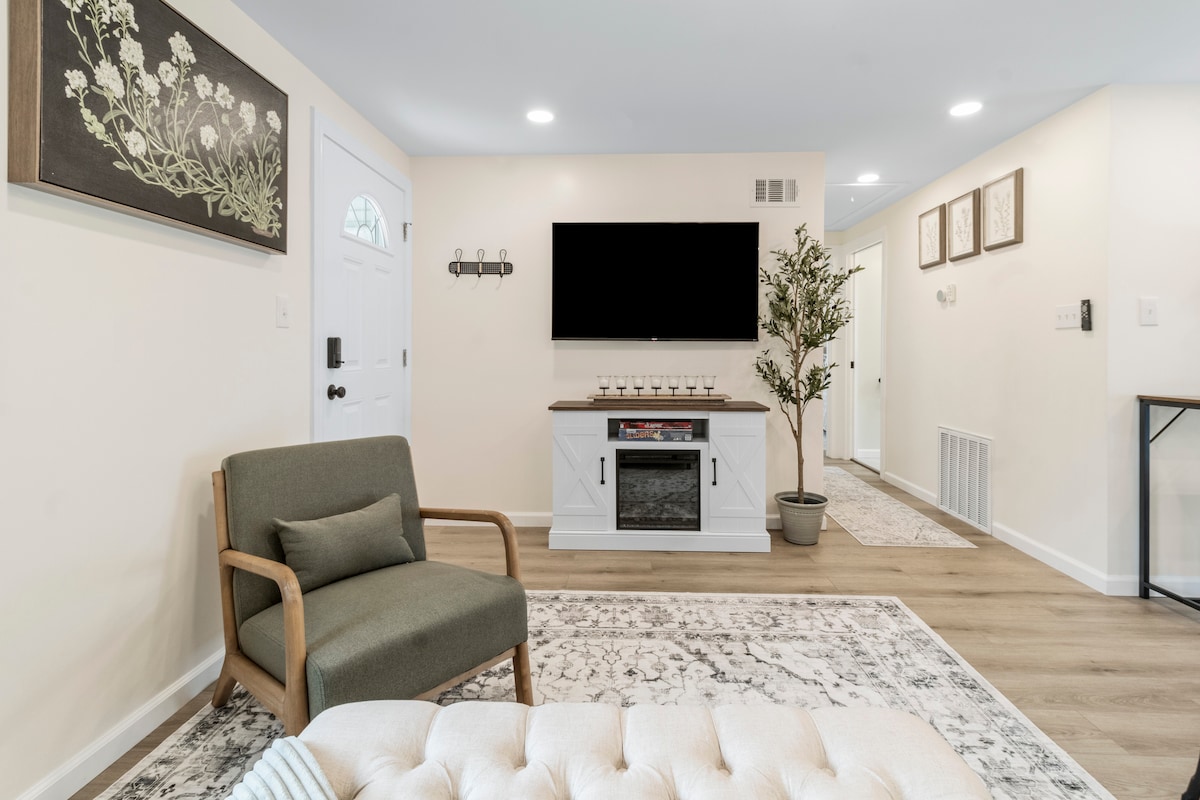 Современная квартира с 3 спальнями и 2 ванными комнатами на тихой улице Ланкастера, 5 минут до аэропорта Буффало, 15 минут до центра Буффало, в пешей доступности от центра Ланкастера, 22 минуты до стадиона Биллс. Простое самостоятельное заселение, обновленная кухня и ванные комнаты, центральный кондиционер/отопление, быстрый Wi-Fi и потоковое телевидение. Уютный камин, крытая терраса и костровище у частного ручья. Подъездная дорога подходит для 4–5 машин. Наружные камеры видеонаблюдения на территории. Прачечная для гостей отсутствует, но прачечная-автомат находится в 2 минутах ходьбы. Отличная база для деловых поездок, семейных визитов, игровых дней и однодневных поездок на Ниагару.