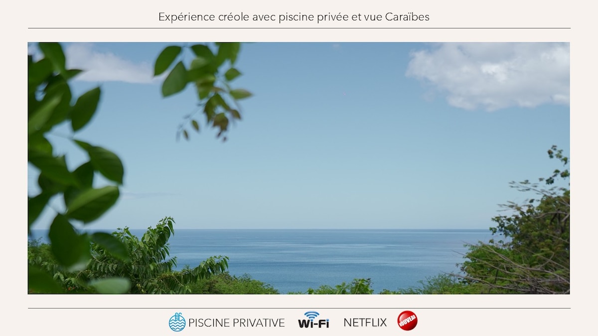 Villa créole, terrasse et piscine privée, vue mer.