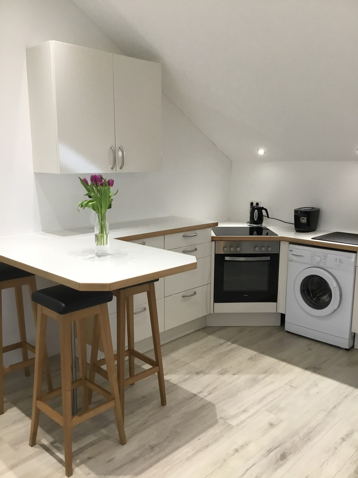 Наша квартира для отдыха находится на чердаке нашего бунгало. В квартире есть комната с гостиной, спальной зоной и мини-кухней. Кроме того, есть ванная комната. (Однокомнатная квартира) Вы можете добраться до нее через главную входную дверь нашего дома через общий коридор и лестницу вверх, через нашу галерею. Только наши гости живут на верхнем этаже, он также запирается отдельным ключом. Дом расположен в тихом жилом районе.