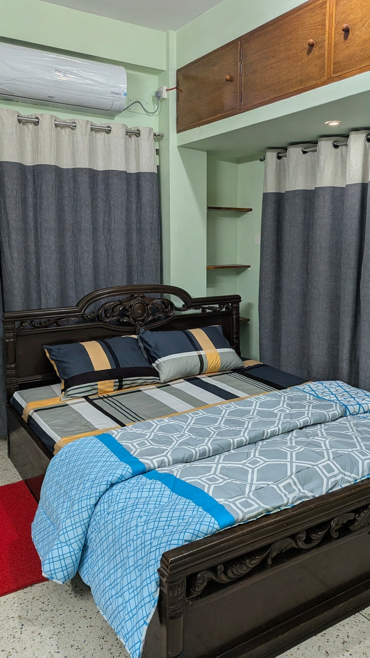 Если вы думаете о полноценной квартире с 3 кроватями и современными удобствами (кондиционеры во всех спальнях, горячая вода в туалетах,холодильники, ткань), со спокойным, довольно удивительным видом на озеро и приятным районом с игровой площадкой, пешеходной дорожкой; это место, о котором вы можете подумать. Это квартира архитектора, где он познакомил с домашней культурой Бангладеш. С парковкой на 2 автомобиля каждый может насладиться отдыхом, как свой собственный дом. building6, Ruap, Sector-18, Uttara