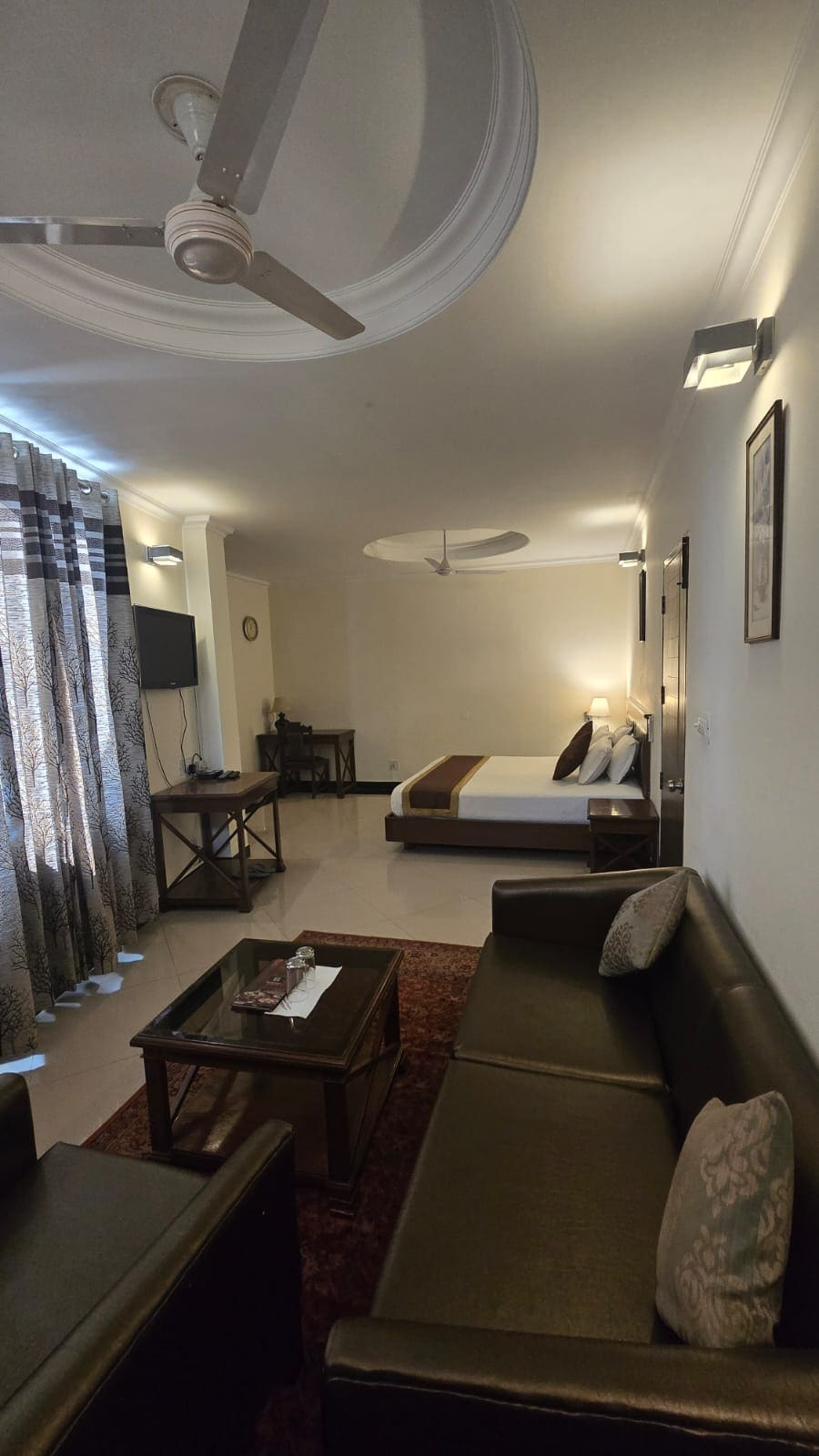 ◆Всего в 4,7 км от аэропорта Шимлы ◆Люкс с потрясающим видом на горы В номере◆ есть роскошная круглая кровать и собственная ванная ◆Теплый свет и стильные светильники усиливают атмосферу ◆Элегантный деревянный интерьер создает уютную и стильную атмосферу ◆Большие окна с мягкими белыми шторами приглашают любоваться природой ◆Идеальное место, чтобы насладиться безмятежным шармом Шимлы