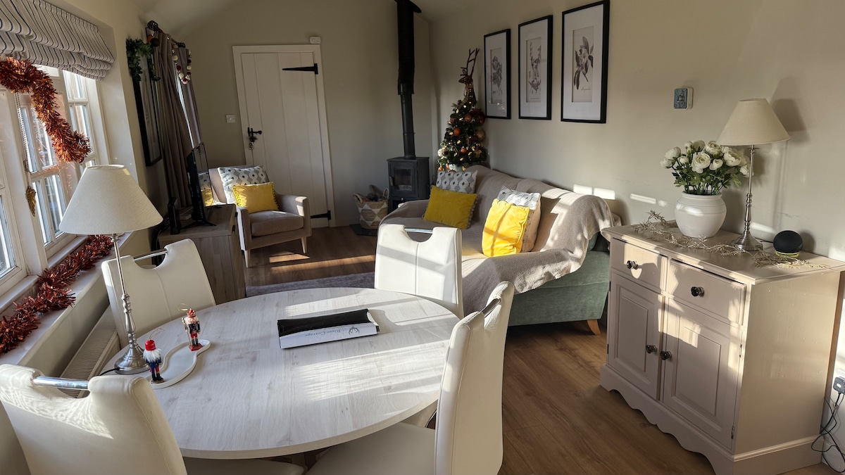 Просторный, хорошо оборудованный амбар, построенный по чрезвычайно высоким стандартам, с собственным патио и садом с видом на другой сад и поля. Дизайнерская кухня и барная стойка для завтрака с гостиной/столовой, подогревом пола и дровяной печью делают это очень уютным со всеми потребностями. Две большие спальни с ванными комнатами, одна с двуспальной кроватью, а другая с двумя односпальными кроватями. Идеально подходит для пешеходов и велосипедистов, так как мы примыкаем к велосипедной дорожке Downs Link. Не подходит для детей младше 10 лет.