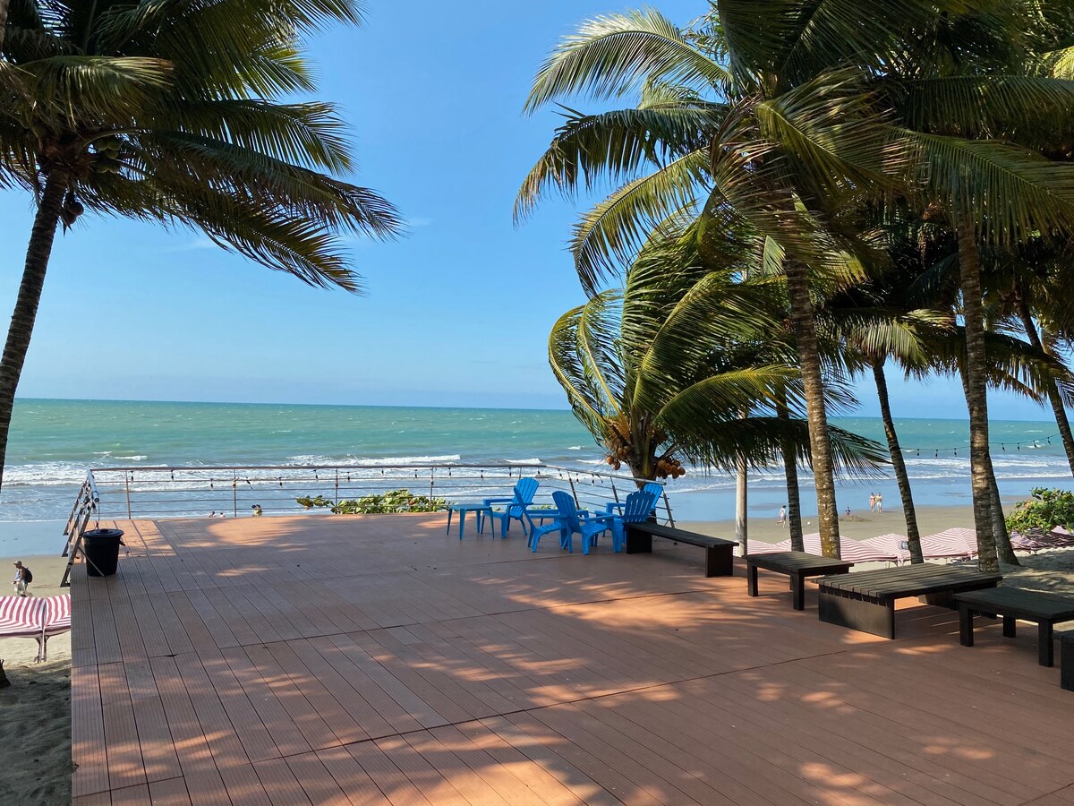 Suite privada piso uno cuenta con AIRE ACONDICIONADO y ofrece comodidad, acceso a piscinas, áreas sociales y salida directa a la playa. Playa Azul 1 se encuentra en una ubicación privilegiada al final de la playa de Tonsupa, ideal para familias, parejas o grupos que buscan descanso y seguridad junto al mar. ✔ Piscinas /Canchas /Deck /Pérgola ✔ Acceso directo a la playa ✔ Seguridad 24/7 ✔ Restaurantes cerca y áreas sociales Reserva y vive frente al mar. Ideal para desconectar y disfrutar.
