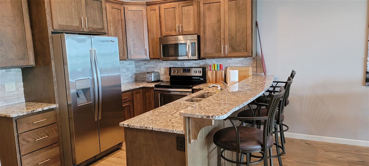 Этот кондоминиум расположен на озере Окободжи на курорте Bridge 's Bay Resort, из окон открывается потрясающий вид на круглый год. Верхний этаж, вид на озеро, большой балкон, сводчатые потолки, рестораны на территории, 6 ежедневных пропусков к аквапарку/ бассейну (сезонно) и тренажерный зал. В этом семейном кондоминиуме есть 3BR, удаленное рабочее место, стиральная/сушильная/сушильная, гриль, телевизор, телевизор, игры и полностью меблированная кухня. Этот кондоминиум находится в центре Окободзи, в нескольких минутах ходьбы от невероятных магазинов, ресторанов и множества мероприятий на свежем воздухе. Запрещены домашние животные, вечеринки и курение.