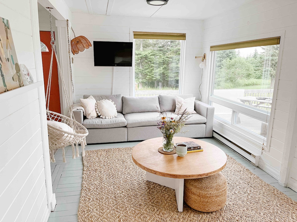 Расслабьтесь в загородной комфортной атмосфере и насладитесь великолепным видом на океан из своей просторной гостиной. С вашей террасы открывается великолепный вид на океан, который имеет самые высокие приливы в мире и имеет стулья Adirondack и обеденную зону, позволяющую вам расслабиться и насладиться свежим соленым воздухом и великолепным видом. Коттеджи также доступны для инвалидных колясок. Это еще два коттеджа на территории. Наш коттедж в морском стиле и современный тематический коттедж.
