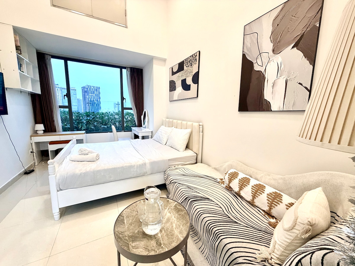 Побалуйте себя роскошью, исследуя потрясающий SG!Вся эта квартира с 1 спальней станет вашим убежищем от всегда оживленного Хошимина. Моя квартира находится вдали от городского шума. Вы можете расслабиться у панорамного бассейна на крыше или позаниматься в хорошо оборудованном тренажерном зале. Оба бесплатны! Выйдите на улицу, и вы окажетесь в центре всего: рестораны, кофейни, уличная еда, супермаркет и ночная жизнь. Туристические достопримечательности 1-го района находятся всего в 3 минутах езды или в нескольких минутах ходьбы через реку SG.