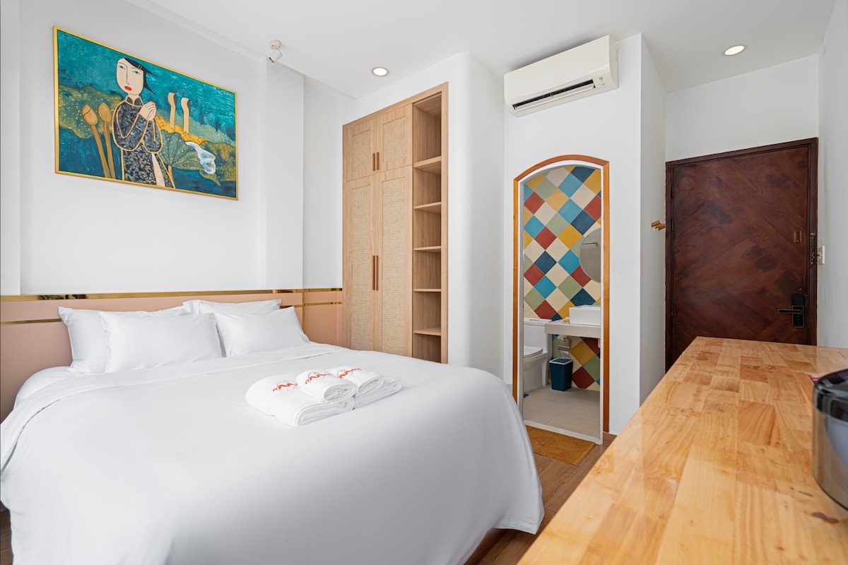 Эта резиденция, расположенная на свежей, усаженной деревьями улице в центре Сайгона, сразу выделяется. Здание выглядит красиво оформленным, а спокойный, зеленый район сохраняет все прохладным и спокойным, в то время как культовые достопримечательности находятся всего в нескольких шагах. Внутри люкс светлый, элегантный и полностью обновленный, с каждой деталью, предназначенной для длительного и комфортного отдыха. Откройте шторы, и город предстанет перед вами в широком, прекрасном виде.