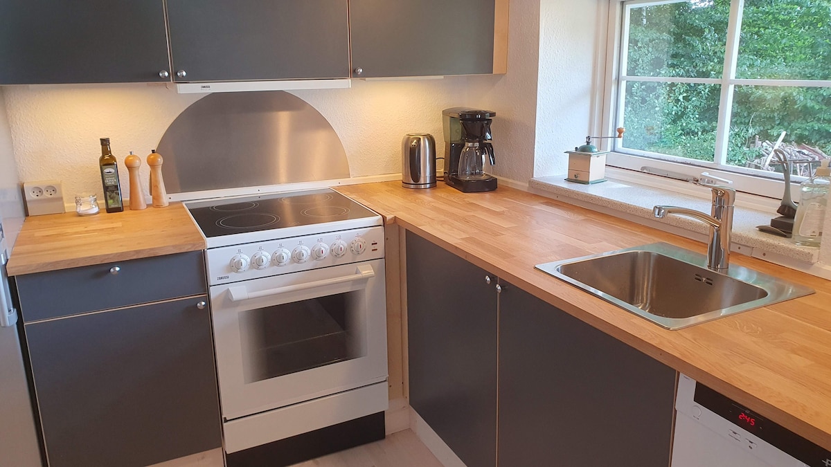 Рядом с Эбельтофтом вы найдете этот коттедж, окруженный диким садом с гамаком и садовой скамейкой. Дом предлагает множество уникальных деталей, таких как печь. Устойчивость является общей темой. Мансарда - идеальное место, когда вам нужно полное расслабление с хорошей книгой, или где могут играть дети. Сад в основном предоставлен самому себе. В доме также есть прекрасный душ на улице, а после ополаскивания можно насладиться сауной на открытом воздухе.
