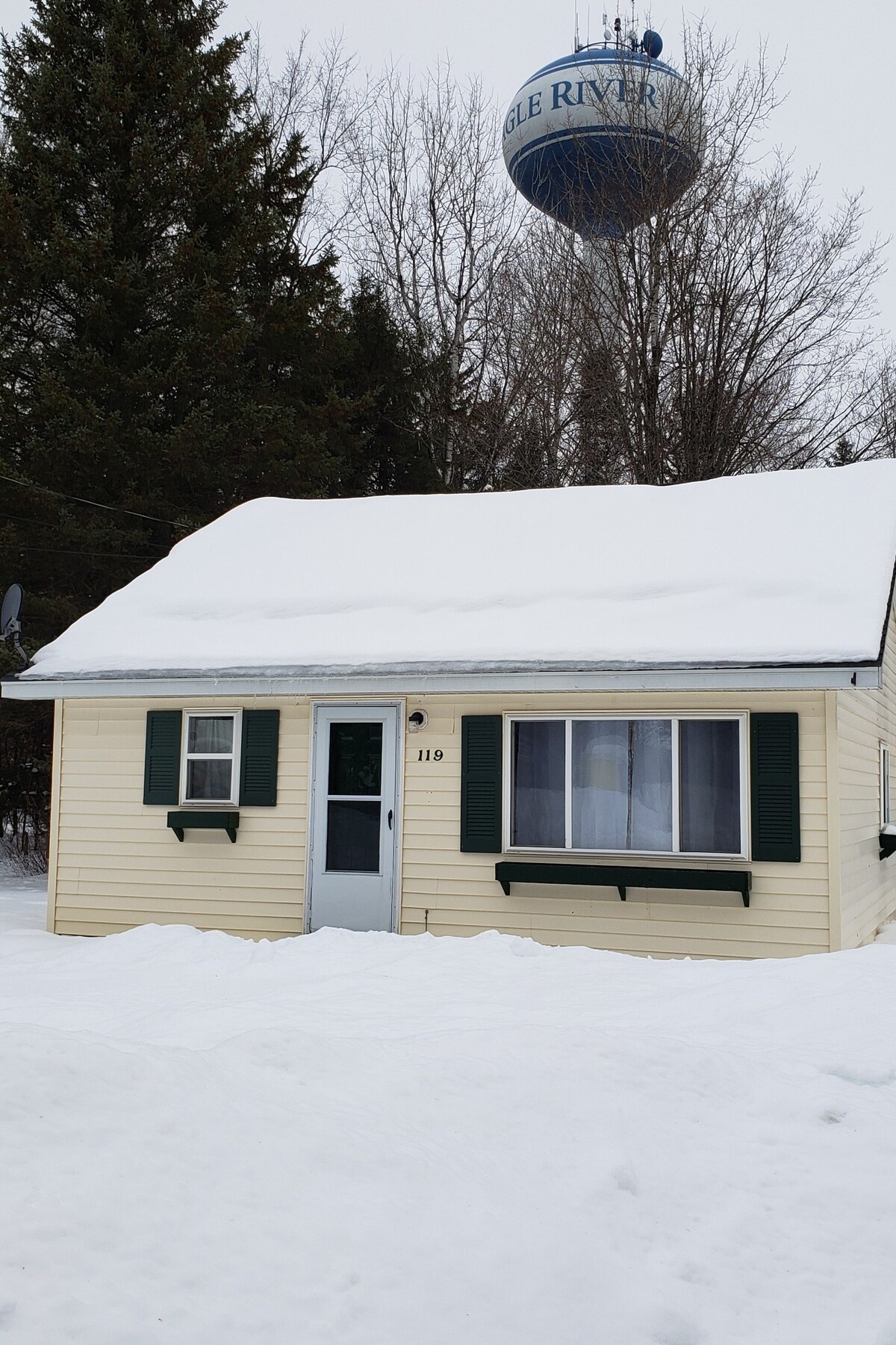 Eagle River Trailside is right in Eagle River directly on the atv/snowmobile trail. 5 minute walk to downtown or Cranberry Fest. Launch your boat on the chain nearby in summer. 100 foot long and flat driveway for parking. Central air conditioning, 2 bedrooms, 1 bathroom with shower/tub, kitchen, and living room. WIFI with Hulu and Roku TV is included. We provide a pet free stay so we cannot accept service animals or pets. Extra guests over four will be charged a $100 per night fee.