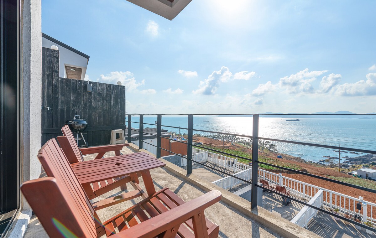 Пансион Namhae Bikyung. Завтрак, рубиновый, вид на океан, вид на море, для пар, отдельная терраса, барбекю, закат, хороший пейзаж