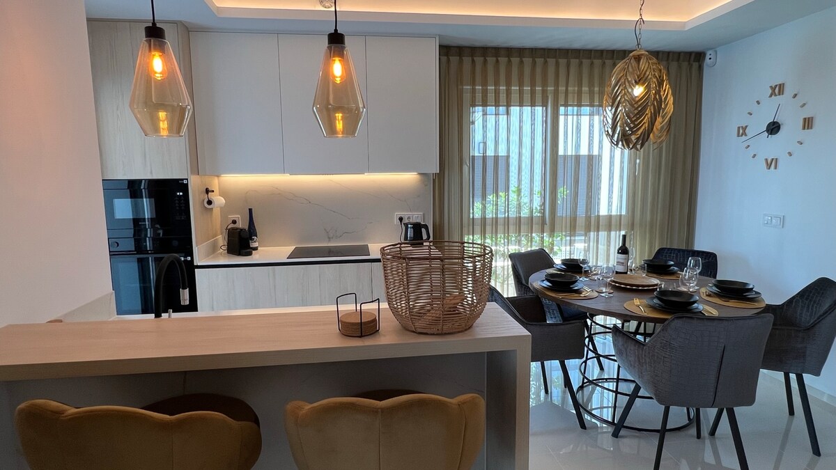 Номер лицензии: CV-VUT0516831-A - Совершенно новая и исключительно меблированная квартира на первом этаже для 4 человек. - Полностью и современно меблирована - прямой доступ к бассейну; — 2 спальни, 2 ванные комнаты, кухня, южная терраса с садовой мебелью, 3 телевизора, Wi-Fi с оптоволоконным кабелем, кондиционер, барбекю и частная парковка. — Полотенца и простыни включены. — Фантастически красивые песчаные пляжи всего в 10 минутах езды. - Шопинг, рестораны и бары в этом районе. — Поле для гольфа, велосипедные маршруты и т. д.