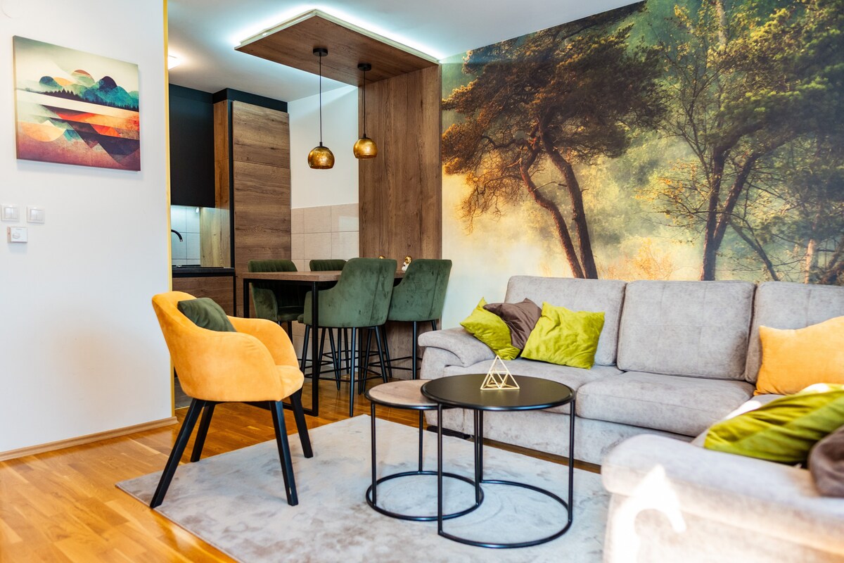 A cosy apartment offers everything you need for a pleasant stay. We have thought through every aspect of our guests' confort, so we provided large and confortable bed, cozy sitting area with cable TV and WiFi, fully equipped kitchen and bathroom. Udoban i moderan apartman može da ugosti do 4 osobe i sastoji se od spavaće sobe sa velikim i udobnim krevetom, dnevnog boravka sa ležajem na razvlačenje, potpuno opremljene kuhinje, trpezarije i kupatila. Apartman posjeduje kablovsku TV, klimu i WiFi.