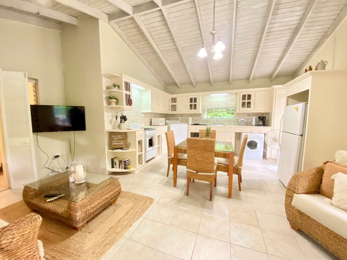 Эта просторная квартира расположена в Сент-Лоренс-Гэп, главном туристическом центре острова. Она идеально подходит для одиночных путешественников/пар, которым нужно жилье в МИНУТАХ ХОДЫ от пляжа, лучшей ночной жизни, многочисленных удивительных ресторанов и кафе, а также главной автобусной линии. Наше расположение и цена просто НЕПРЕВЗОЙДЕННЫЕ! Закаты, долгие прогулки по пляжу, тропические коктейли и танцы под карибскую музыку с друзьями или любимым человеком — и все это менее чем в минуте езды! Кроме того, часть стоимости каждого бронирования идет в местный приют для собак :) 🐾