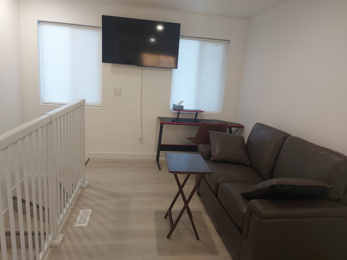 Очаровательная 2-комнатная квартира в северо-восточном Калгари (с 2 большими кроватями размера King size, отдельным входом и отдельным отоплением). Юридический цокольный люкс, 10 минут езды до аэропорта Калгари, комфортный и уютный. Просторный дом с новой современной мебелью, спокойная и семейная обстановка. Каждому гостю, который останавливался здесь, нравится отзыв. Бесплатная парковка. 10 минут до аэропорта. 6 минут до железнодорожного вокзала. Очень близко к автобусной остановке Рядом с торговыми центрами Наслаждайтесь Netflix и Disney Junior Детская кроватка и рисоварка Очень быстрый Wi-Fi.