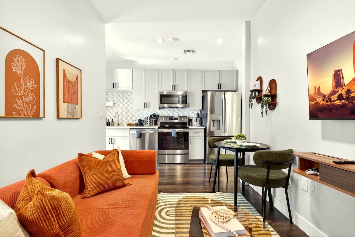 Добро пожаловать в нашу квартиру с 2 кроватями и 2 ванными комнатами в центре Финикса! Наша квартира идеально подходит для компании друзей, семей и пар, которые хотят исследовать оживленный город. Наслаждайтесь нашей стильной гостиной, полностью оборудованной кухней и удобными спальнями. Вы будете в оживленном и оживленном районе, рядом с лучшими ресторанами, барами и достопримечательностями Финикса. Рядом с Roosevelt Row ✔ Полностью оборудованная кухня ✔ Комфортабельные спальни с кроватями размера «queen-size» ✔ Wi-Fi ✔ Бесплатный гараж Парковка В гараже