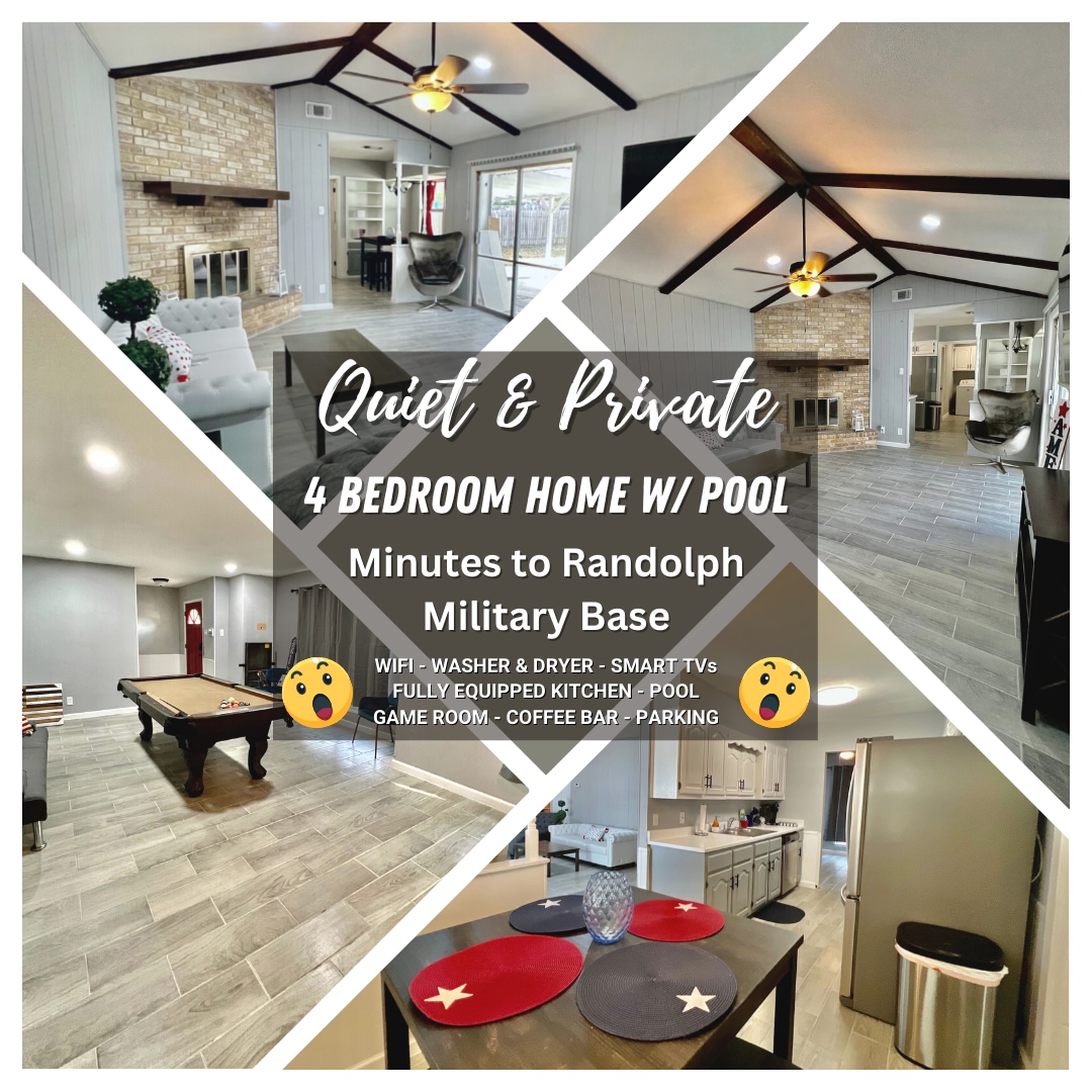4 спальни, бассейн • Меблированная квартира рядом с базой ВВС Рэндольф • Стиральная машина + Wi-Fi