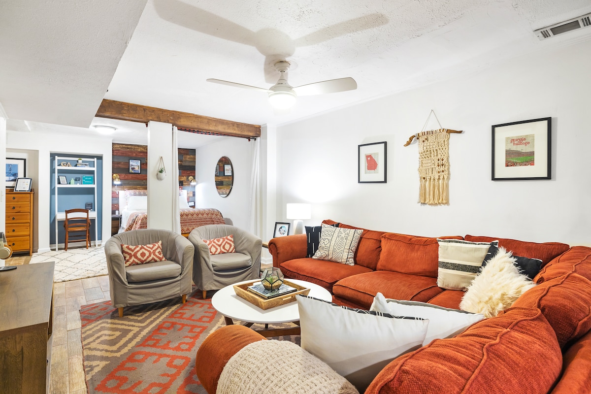 Просторная квартира с одной спальней в саду с отдельным входом на тихой улице. Быстрый Wi-Fi, полностью оборудованная кухня, ванная с туалетом. Также имеется небольшой внутренний дворик на заднем дворе, который полностью огорожен. Всего несколько кварталов до ресторанов и кофеен. Рядом с Little 5 Points, Beltline, Ponce City Market, а также местными жемчужинами, такими как рынок Candler Park Market, лес Фрейзер и Lake Claire Land Trust. Владельцы живут наверху с двумя детьми и собакой. Вы можете услышать звуки семейной жизни в дневное время.