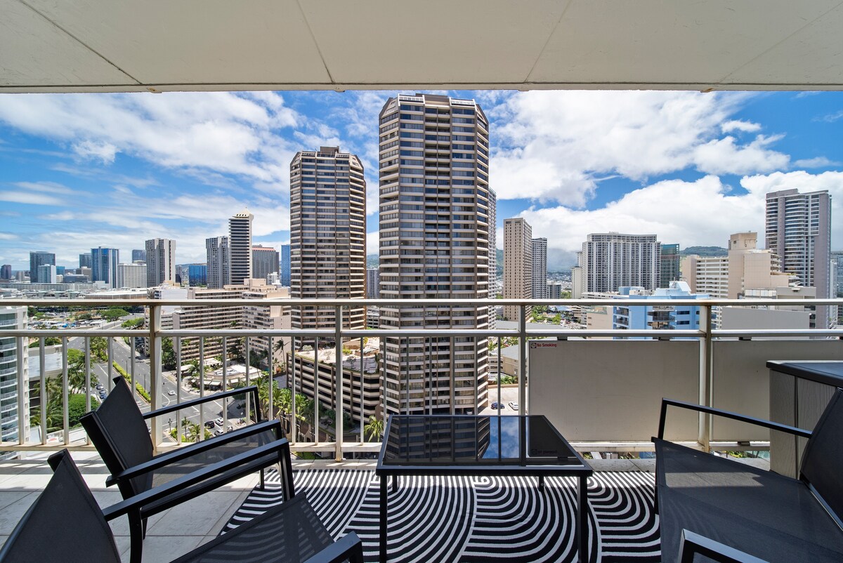 Вид на город, Ilikai Queen, 1 спальня, мини-кухня и бассейн