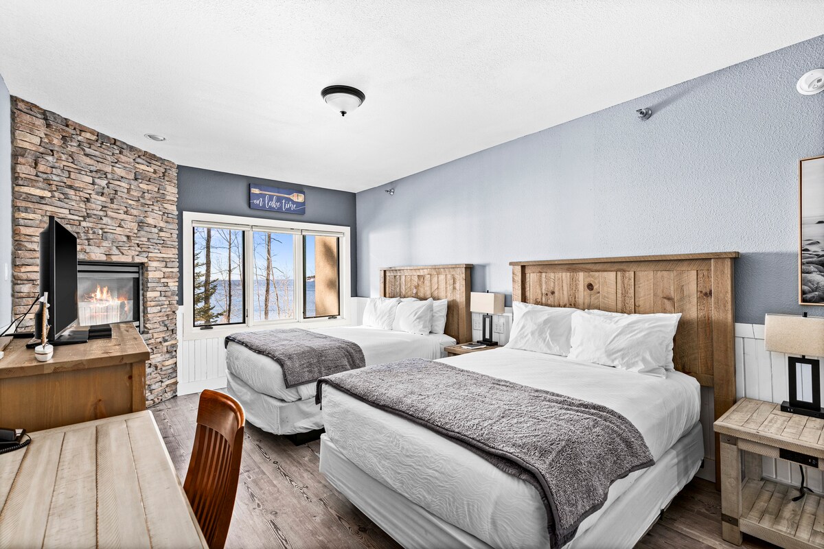 Роскошный кондоминиум на берегу озера – Ту-Харборс, недалеко от достопримечательностей северного побережья Миннесоты. Отдохните в недавно отремонтированной квартире с 1 спальней и захватывающим видом на озеро Верхнее! Наслаждайтесь полностью укомплектованной кухней, люксом с кроватью размера King size, глубокой ванной и потрясающим видом на озеро, уютным диваном-кроватью размера Queen size и камином в каждой комнате. Отдохните на собственном балконе с грилем и обеденной зоной. Доступ к бассейнам с подогревом в помещении и на улице, сауне, достопримечательностям северного побережья, магазинам и ресторанам. Забронируйте сейчас, чтобы идеально отдохнуть на Северном берегу!