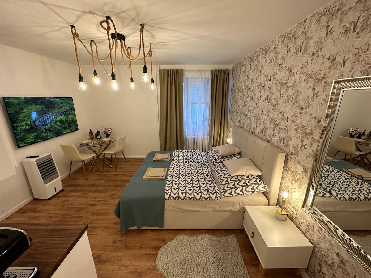 Однокомнатная квартира находится в нескольких минутах ходьбы от многих ресторанов, клубов и достопримечательностей Братиславы (например, главной площади, исторического оперного театра, Старой ратуши). Легко добраться по городу с близлежащих станций общественного транспорта. Полностью оборудованная кухня с посудой и основной посудой. Раскладная кровать размера «queen-size». Диван раскладной (удобно вмещает одного человека). Ванная с ванной. Предоставляется постельное белье и полотенца.