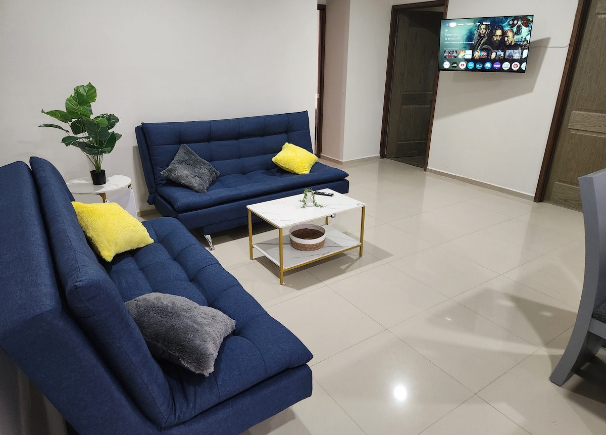 Espacioso departamento en conjunto de edificios totalmente privado. Consta de dos recámaras y dos baños, con todo lo necesario (lavadora, secadora, sofa cama, cocina); con instalaciones nuevas, además de wifi disponible en todo el departamento, picsina (en área común) y dos áreas con asadores, portón principal con control.