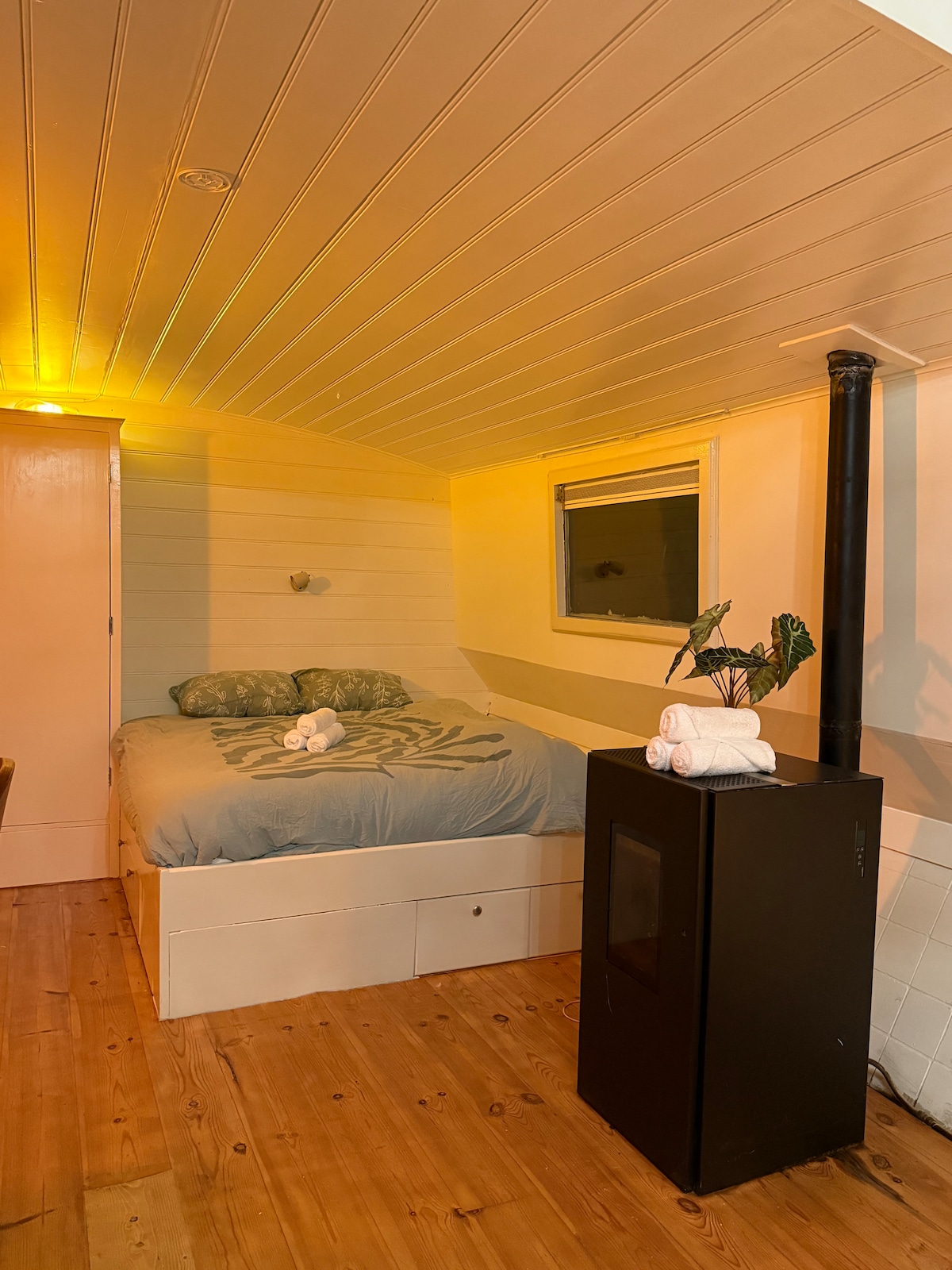 The perfect romantic getaway for two, relax & enjoy the private sauna and home cinema. Options for Champagnes, rose leaves, chocolate and bites. Some call it 'the loveboat' (some go for the ultimate relaxation with their best friend) You'll stay on a recently renovated former cargovessel with a private mooring at the IJmeer of Amsterdam! Wanna go out? It's less than 15 minutes to central station by tram, it runs every six minutes and goes till 00.30 A breakfast package included