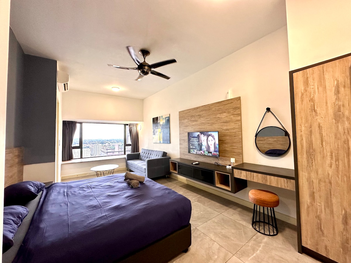 Внимательно прочитайте перед бронированием =) Это квартира с 1 спальней, расположенная в центре города Малакка! ✤ БЕСПЛАТНЫЙ высокоскоростной Wi-Fi. ✤ Смарт-телевизор (NETFLIX+Youtube) Она расположена на ВЕРХНЕМ этаже, наблюдая за городом. **Пожалуйста, ожидайте шума на дороге, когда она обращена к городу. Он расположен прямо через дорогу от торговых центров, закусочных и развлекательных заведений. Прогуляйтесь до популярных туристических мест, таких как улица Йонкер, Форт А 'Фамоса, холм и церковь Святого Павла, Stadthuys и Jonker Street за 10-15 минут.