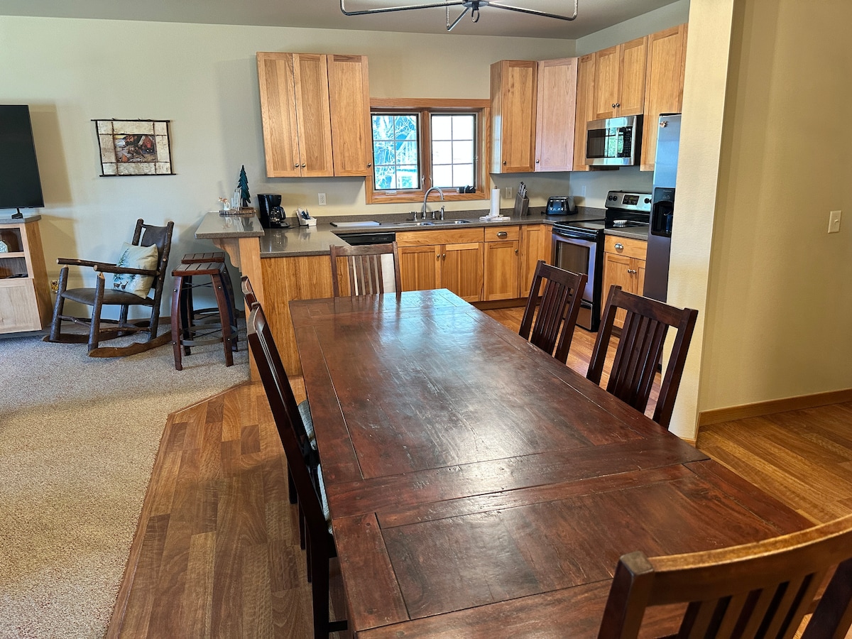 》Save "❤️" Lakeside family escape at Black Bear Lodge! ★ 2BR 2BA condo sleeps 6 with sofa bed ★ Waterfront setting with views and shared sandy beach ★ Private boat slip and on-site launch for easy days ★ Two kayaks included; paddles stored in unit closet ★ Balcony dining for four; added shared picnic tables ★ Roku TVs 50" and 32"; fun board games ★ Between Minocqua and Eagle River; near golf and rides ➡️Book your stay at Black Bear Lodge today and enjoy Saint Germain like a local!