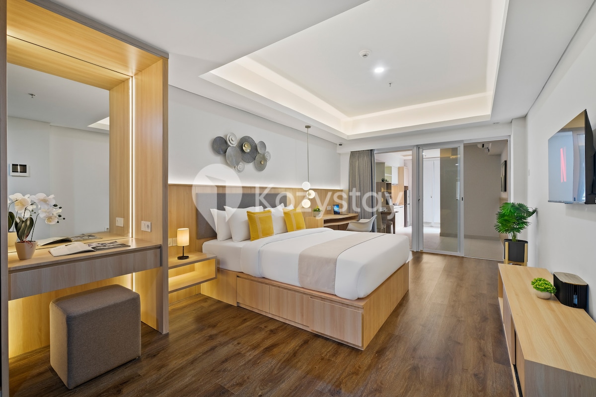 Элегантная квартира-студия площадью 24 кв. м в центре Джакарты, сочетающая стиль и удобство. К услугам гостей кухня, быстрый Wi-Fi, очистка воздуха, 43-дюймовый телевизор Smart TV, аудиосистема и Netflix. Идеально подходит для различных типов проживания, с бесконтактным доступом и такими удобствами, как бассейны, джакузи, тренажерный зал и баскетбол. Теперь есть диспенсер обратного осмоса и измельчитель пищевых отходов, На фотографии газовая плита, которую заменили на индукционную (в соответствии с правилами пожарной безопасности для квартир).