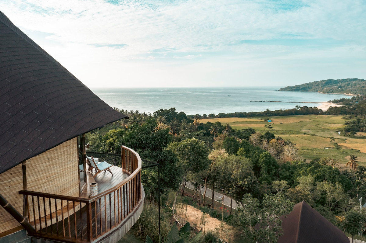 Курорт на берегу моря: бунгало с террасой и видом на океан