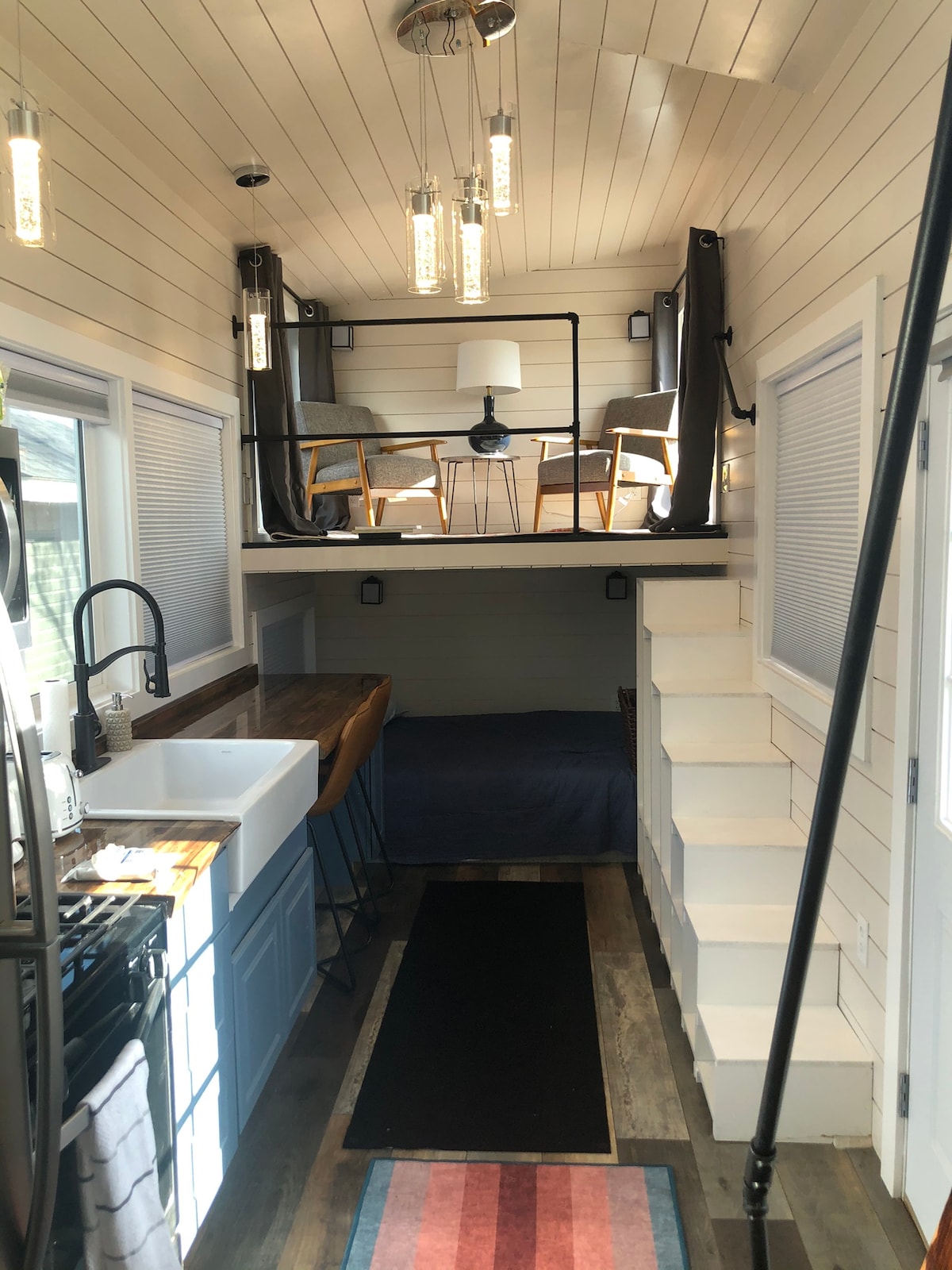 Автобусы NEIGH расположены на последнем этаже амбара в пределах города Пендлтон, штат Орегон. Площадь составляет более600 квадратных футов, в гостиной есть красиво укомплектованная кухня и полностью оборудованная ванная комната, кровать размера Queen size, а также надувной матрас и/или напольный матрас в гостиной. Этот «барндо» - привлекательный вариант для тех, кто хочет удобства и деревенского очарования.