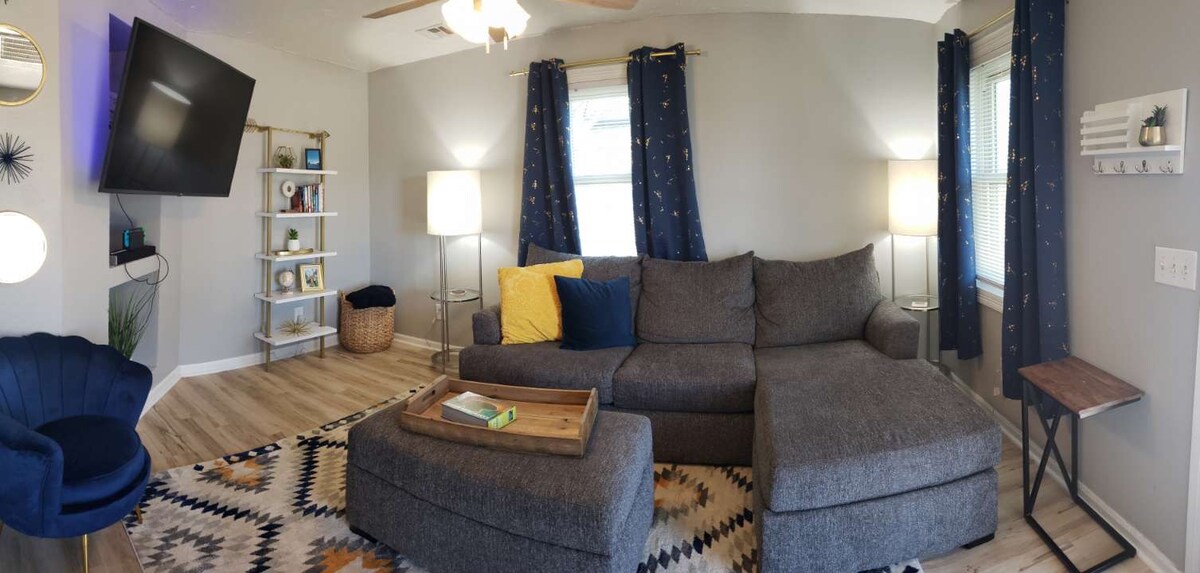 Этот со вкусом оформленный дуплекс расположен в центре Эдмонда, в нескольких минутах ходьбы от магазинов, продуктовых магазинов и ресторанов. Удобное расположение рядом с отличными местными магазинами, вкусными закусочными и быстрым доступом к центру OKC. С комфортом могут разместиться 4 человека. Высокоскоростной Wi-Fi, смарт-телевизоры, уютные кровати и хорошо укомплектованная кухня позволят вам почувствовать себя как дома! Нужно вдвое больше жилья? Забронируйте обе стороны дуплекса! Если вам нужна помощь, свяжитесь с хозяином.
