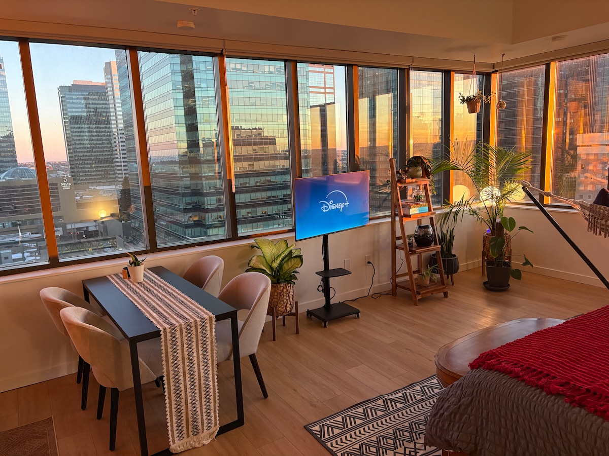Познакомьтесь с непревзойденными видами в центре города ✔ 5 минут ходьбы от Роджерс-Плейс. ✔ Безопасная подземная парковка. ✔ Полностью укомплектованная кухня. Кровать ✔ размера King size для дополнительного комфорта ✔ 1 ванная комната с туалетом ✔ 60-дюймовый Smart TV ✔ Быстрый Wi-Fi. ✔ - тренажерный зал. Прачечная ✔ в номере ✔ Рабочий стол ✔ Кофейня ✔ Рядом с лучшими ресторанами и ночной жизнью Зона ✔ отдыха на открытом воздухе с барбекю. ✔ Гостиная/комната для мероприятий в здании ✔ Тонны естественного освещения ✔ Бесплатный кофе. ✔ Бесплатные шампуни ✔ Жалюзи на каждом окне