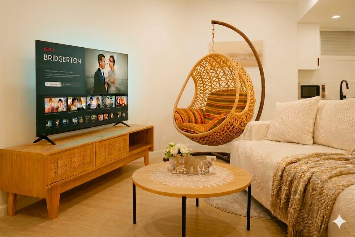 🏡 Ключевые особенности ✔️ Светлый, безупречный легальный подвальный люкс ✔️ 2 спальни с кроватями размера Queen size и постельным бельем в гостиничном стиле ✔️ Футон в японском стиле только для 5-го гостя – дополнительное использование по запросу ✔️ Кухня с кофеваркой Keurig. ✔️ Уютная гостиная с 58-дюймовым телевизором Smart TV. ✔️Стильное подвесное кресло. ✔️ Отдельный вход и простое самостоятельное заселение ✔️ Бесплатная парковка на улице или на подъездной дороге 📍 Поблизости ✔️ 2 минуты езды до торгового центра. ✔️ 15 минут езды до горнолыжного курорта Rabbit Hill. ✔️ 20 минут езды до Международного аэропорта Эдмонтон (YEG) ✔️ 20 минут езды до WEM