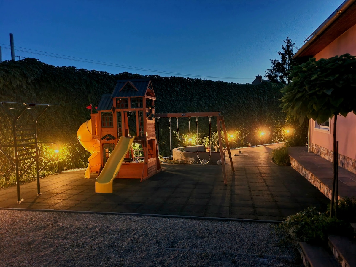 Вся семья будет чувствовать себя комфортно в усадьбе, расположенной в маленькой деревне, окруженной холмами. Большой общий двор, просторная комната, собственная ванная комната и кухня ждут дорогих гостей. Вся мебель в доме уникальна, аутентична стилю дома, но в то же время удобна, с современным оборудованием. В саду также можно жарить бекон и готовить на гриле. Просторная маленькая квартира отлично подходит для 3 человек. Летом обеспечивает приятную, прохладную температуру благодаря толстым стенам.