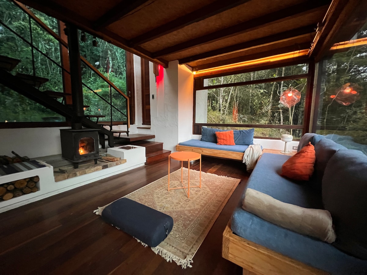 Домик в туманном лесу с камином в Санта-Элене