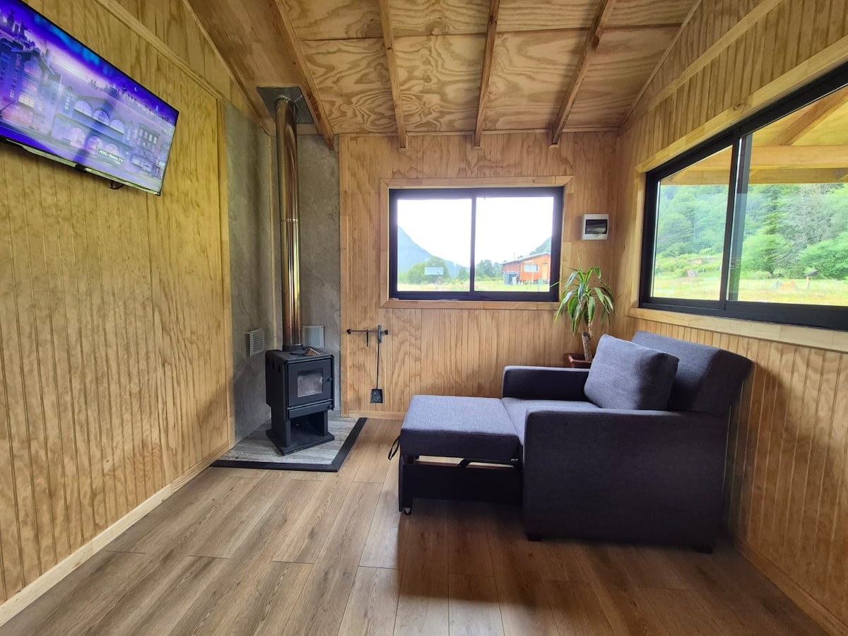 Desconéctate del mundo y vive la magia de la Patagonia en nuestra cabaña. Ubicada en un entorno privilegiado, rodeada de bosques nativos y con vistas impresionantes a las montañas, un lugar perfecto para quienes buscan silencio y comodidad. La cabaña cuenta con: Ambientes cálidos: Terminaciones en madera local y calefacción a leña. Cocina completa, camas de alta calidad y terraza privada. Ideal para disfrutar un café mirando la cordillera y disfrutar de una rica copa de vino.
