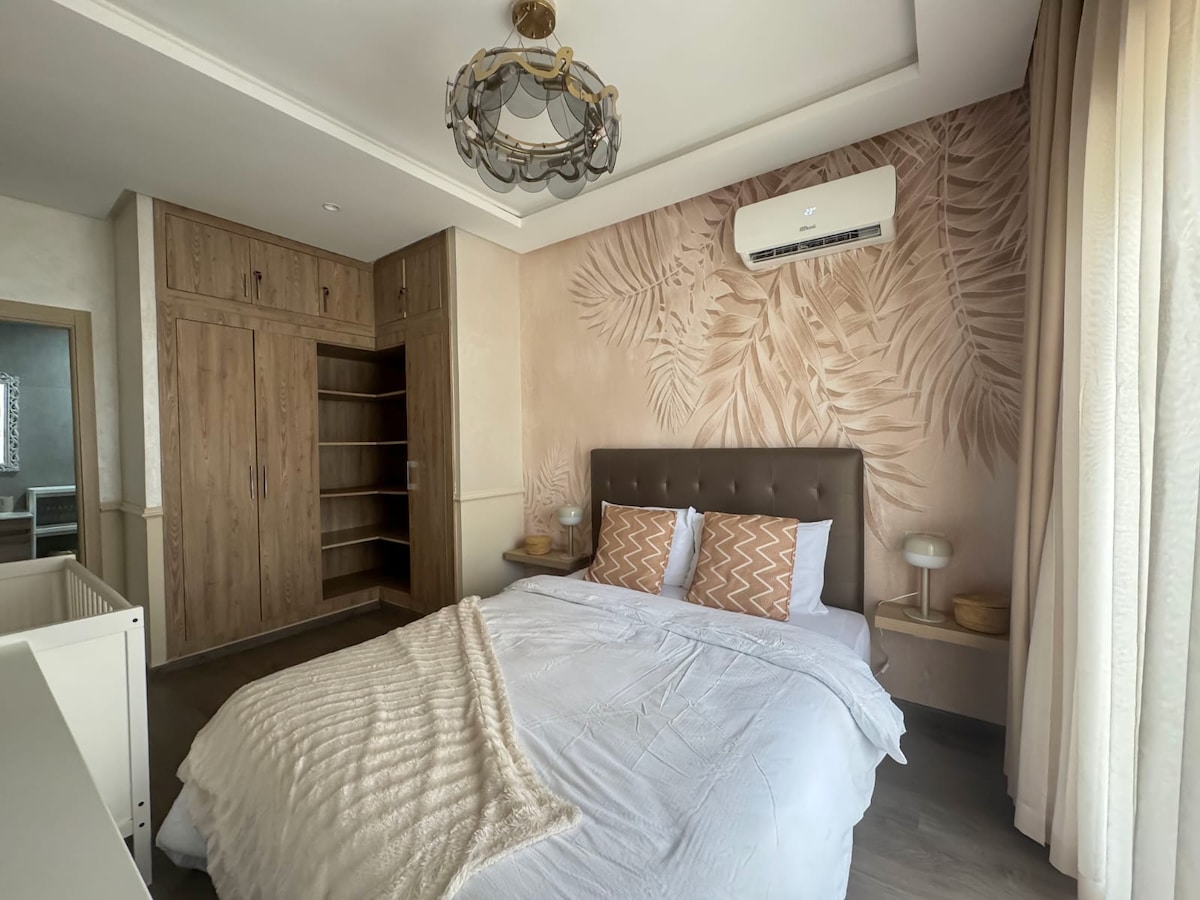 Appartement moderne de 3 chambres à Zenata Eco-City, avec salon lumineux, cuisine équipée, 3 salles de bain, et 2 grandes terrasses offrant une vue imprenable sur la piscine et la mer. Résidence calme et sécurisée, proche de la plage et des commodités. Idéal pour familles ou groupes, jusqu’à 6 personnes. Wi-Fi, climatisation et parking privé inclus. Profitez d’un cadre paisible et haut de gamme.